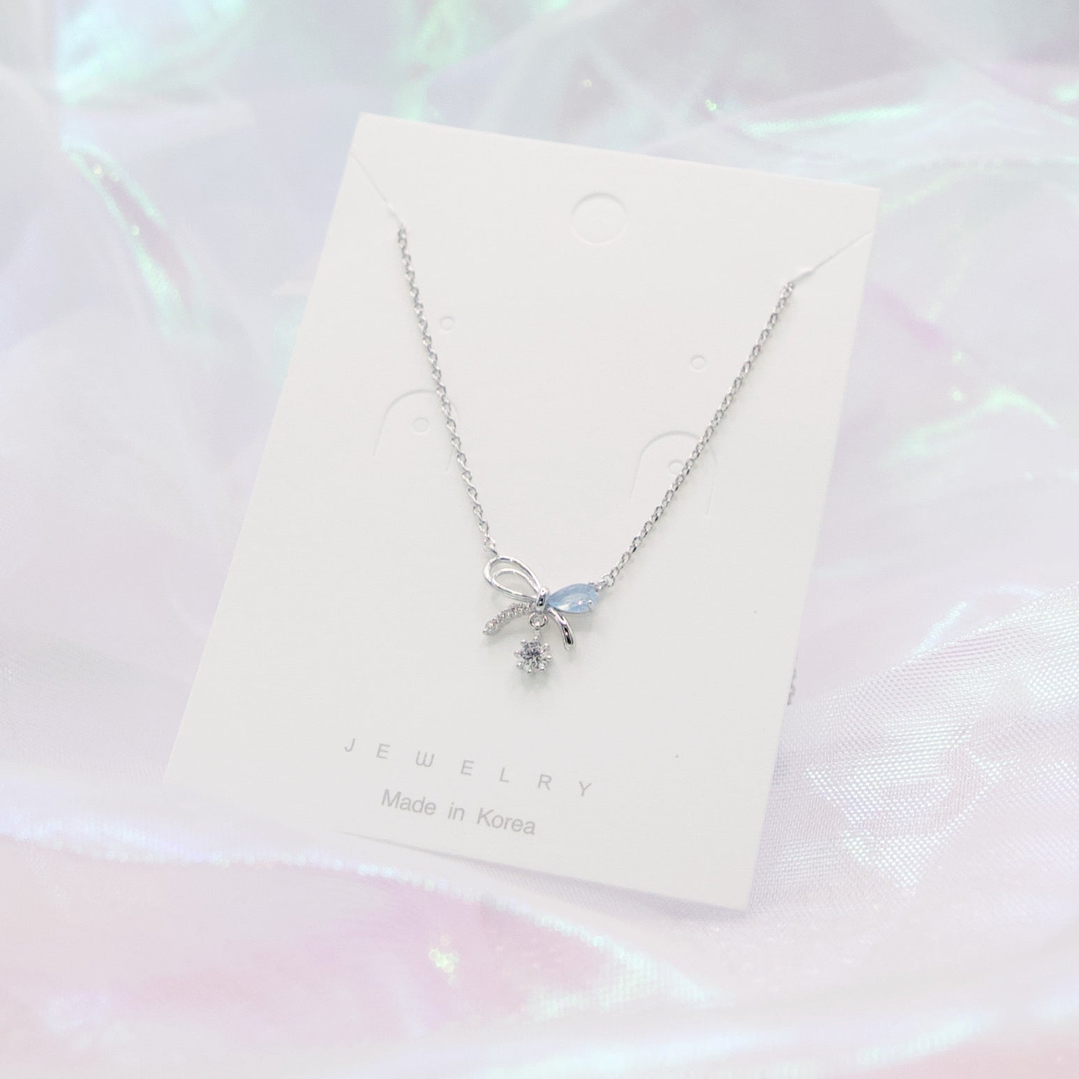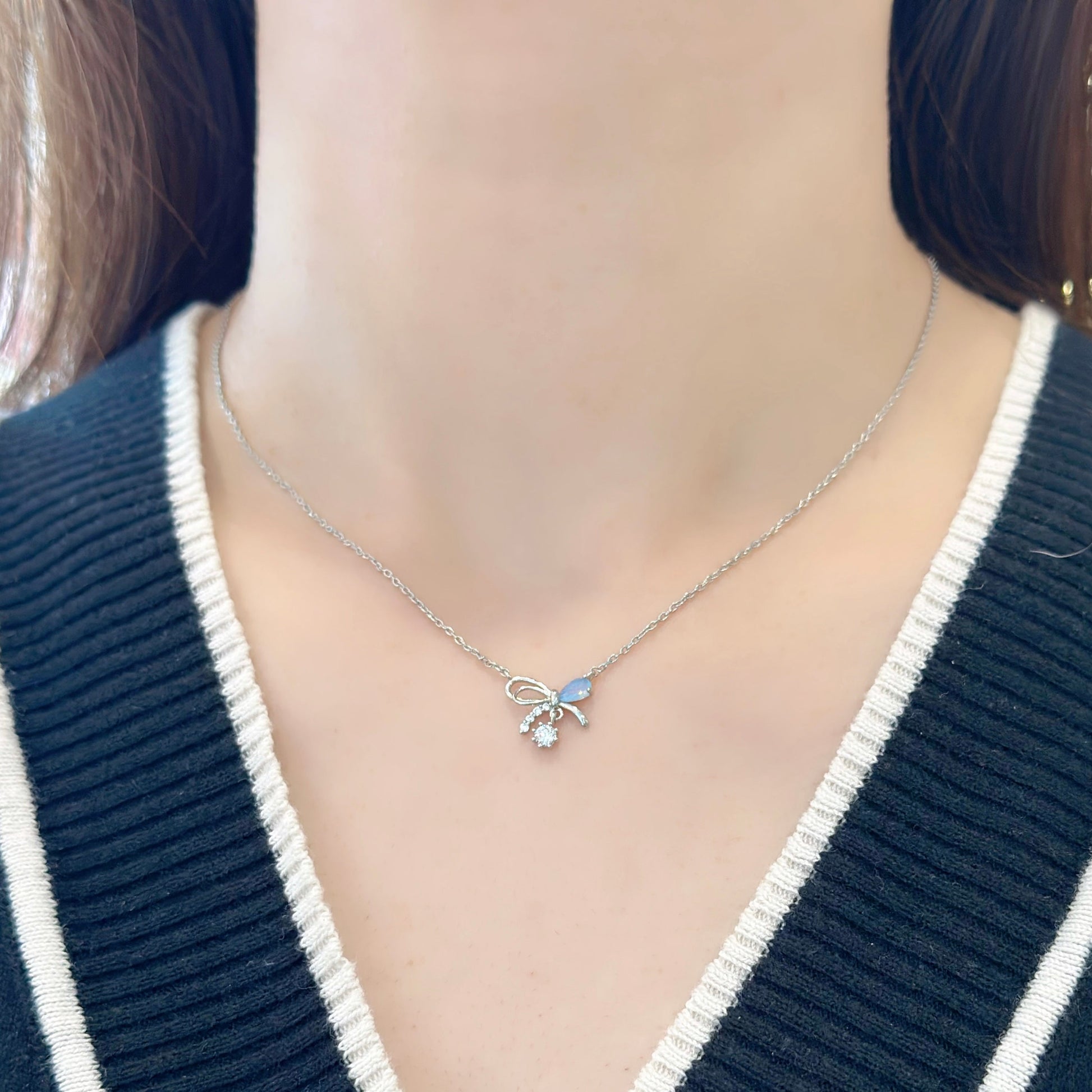 Korean Petit Cute Bow Crystal Drop Necklace