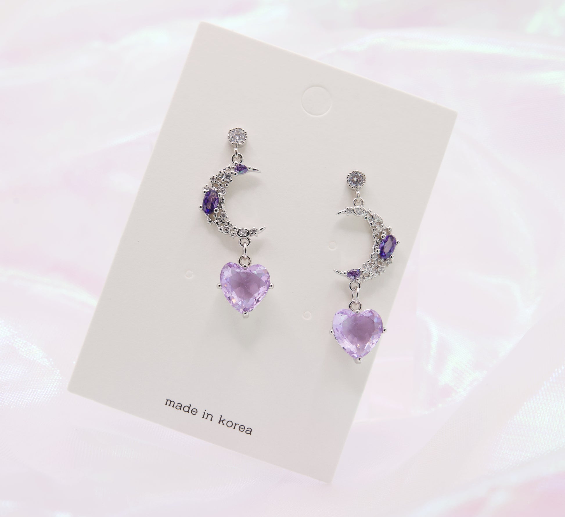 Step into a world of enchantment with these Magic Purple Moon Heart Drop Earrings! Crafted with kpop style, these mystical earrings will transport you to a galaxy of style that's out of this world. Plus, the sweet purple hue and silver studs make them the cutest, most trend-worthy way to show off your inner Sailor Moon!