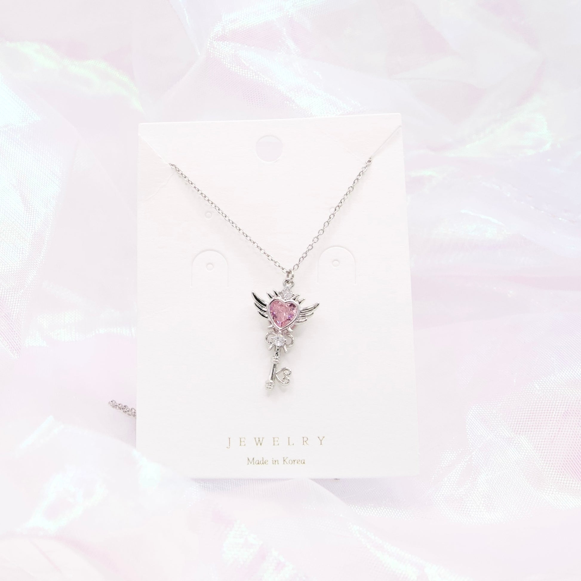 The necklace has a circumference of approximately 42cm and is made of silver-plated brass, cubic zirconia