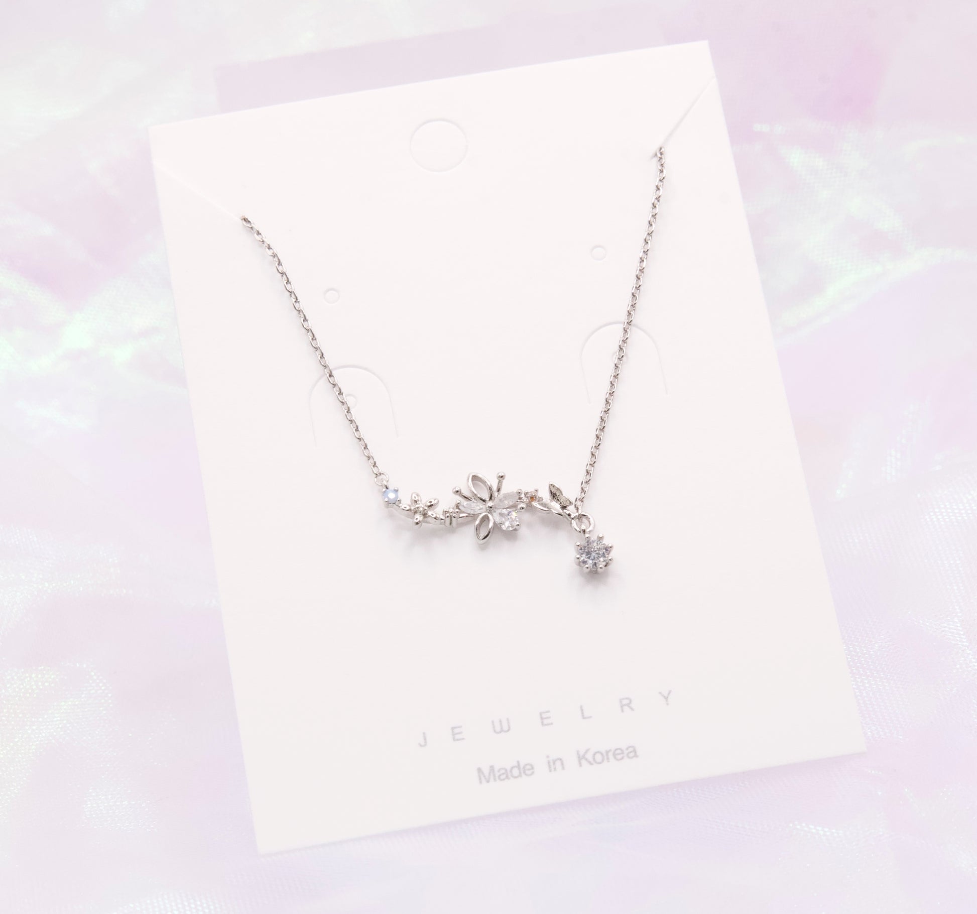 Secret Garden Flower Crystal Drop Korean Style Necklace