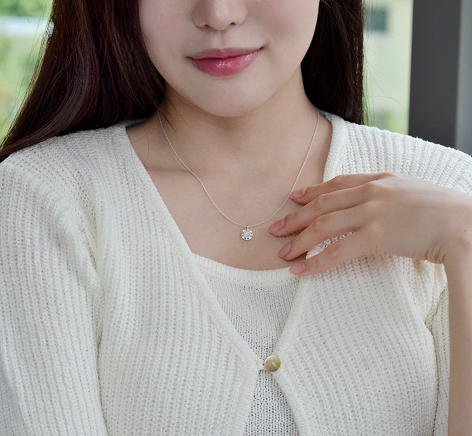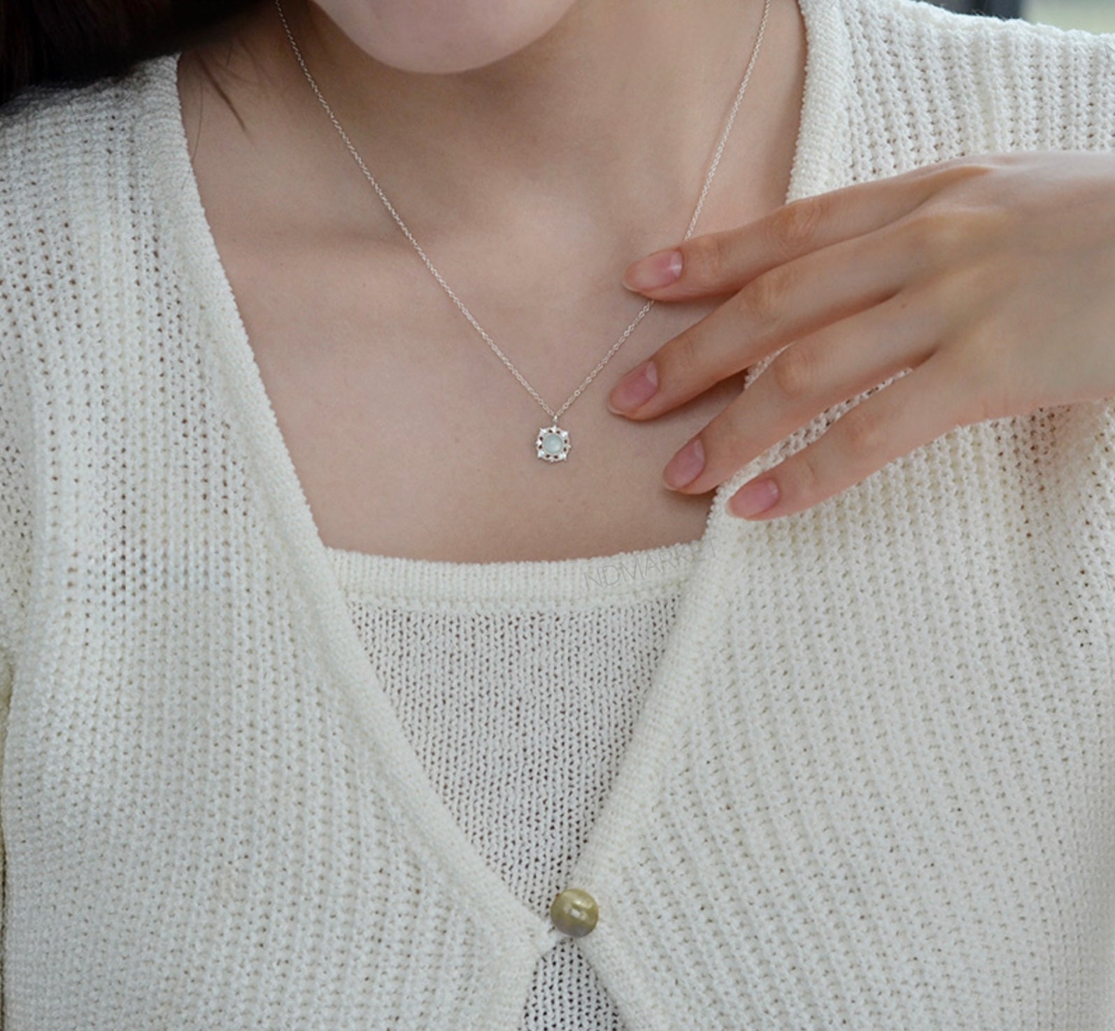 Sterling Silver Natural Stone Royal Romance Elegant Korean Necklace - Aquamarine/Rose Quartz Stone